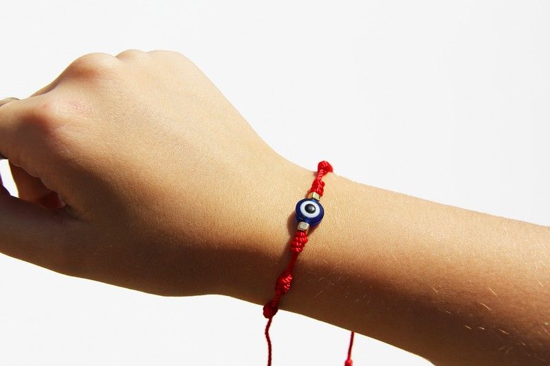 O design inclui um amuleto Olho Turco, conhecido por sua capacidade de afastar energias ruins e o mau-olhado. Esta pulseira combina tradições de várias culturas e é ao mesmo tempo um item de moda e um talismã espiritual.