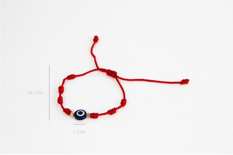 A Pulseira Vermelha de 7 Nós com Olho Turco de 1cm é um acessório de proteção e boa sorte. É feito com um cordão vermelho que possui sete nós, cada um simbolizando um desejo ou propósito.